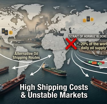 When a war or conflict threatens or partially blocks the Strait of Hormuz — as news reports have indicated during the Iran escalation — the flow of oil becomes uncertain, and global oil prices immediately rise due to fears of supply shortages. This is a classic example of supply risk, transportation risk, and geopolitical premium pushing prices higher.